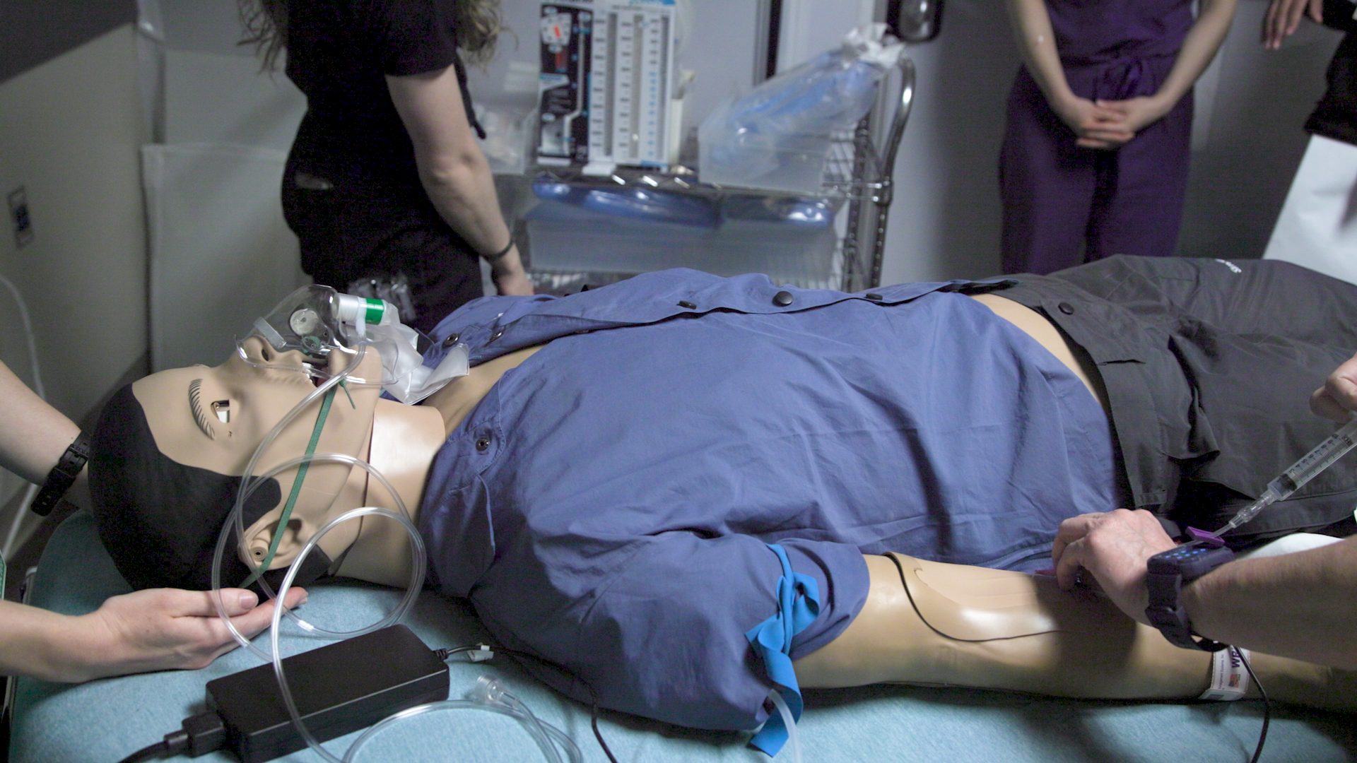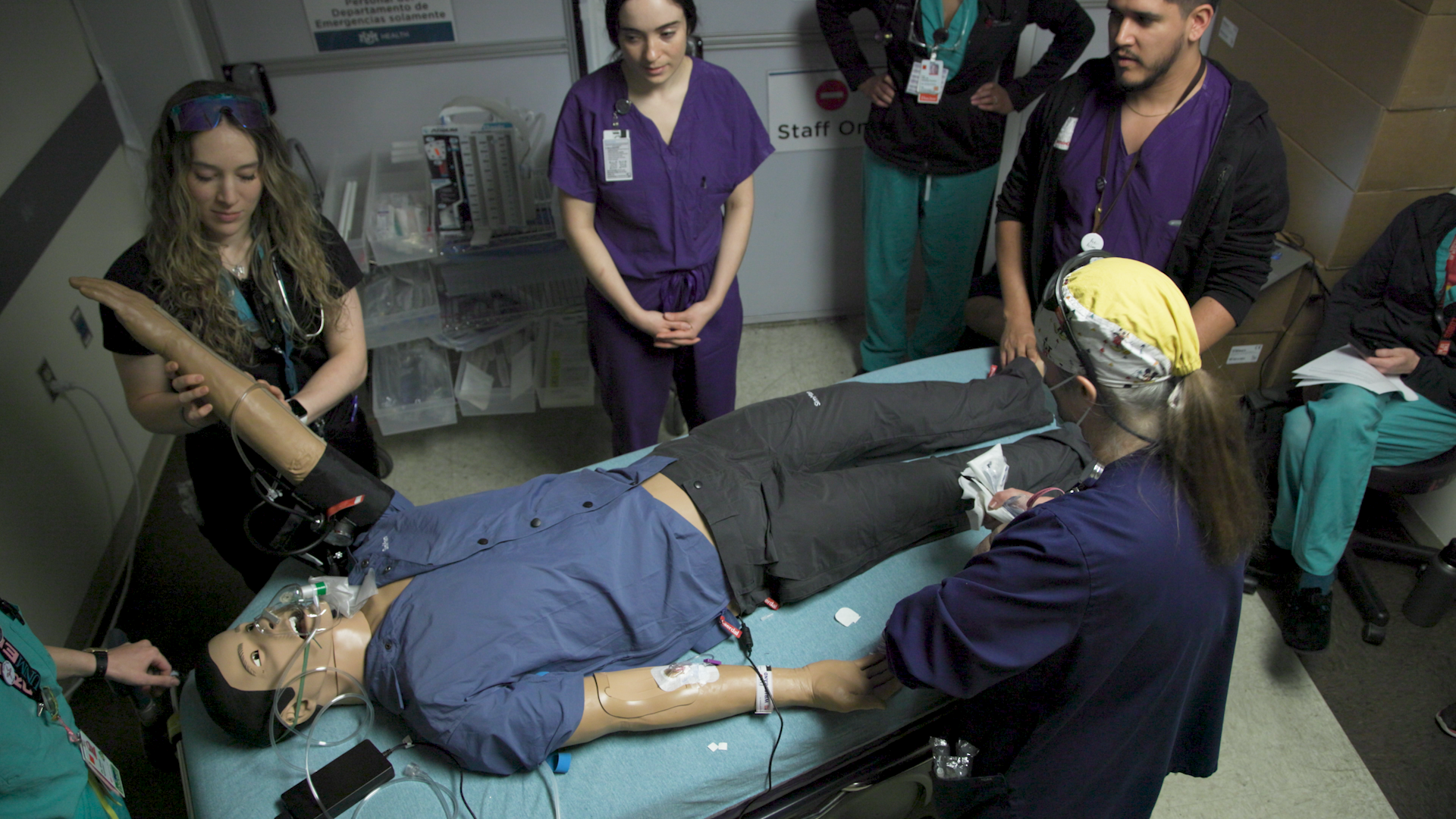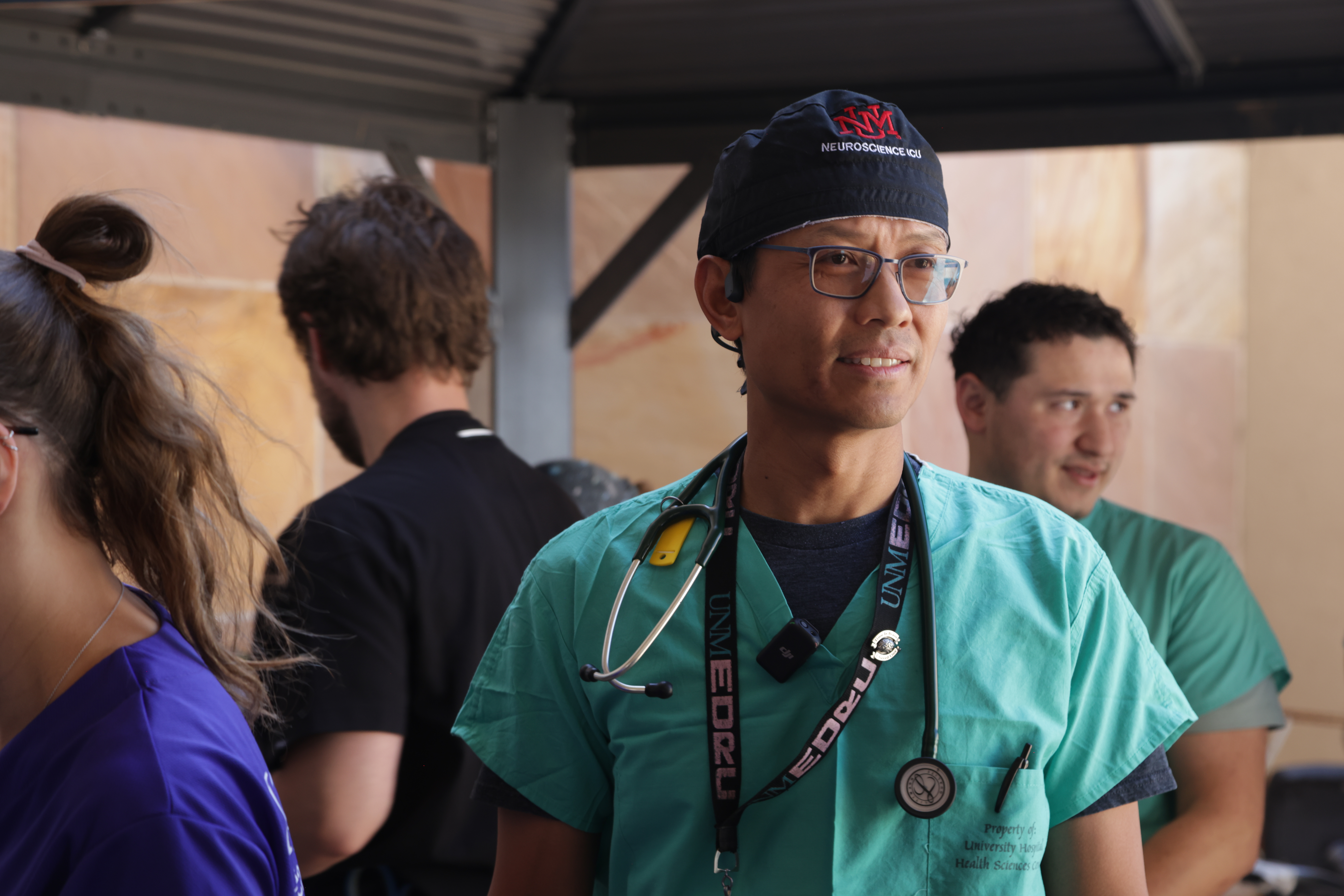 For Robert Alunday, MD, an associate professor in the UNM School of Medicine tasked with running triage in the UNM Hospital ambulance bay, his focus for the scenario was preparing to take on the most injured patients in the area. Since UNM Hospital is the only Level I Trauma Center in the state, it is the only facility equipped to handle the most severe cases. To make the simulation more like a real scenario, care teams at UNM Hospital formed to quickly diagnose and treat mannequins acting as patients.